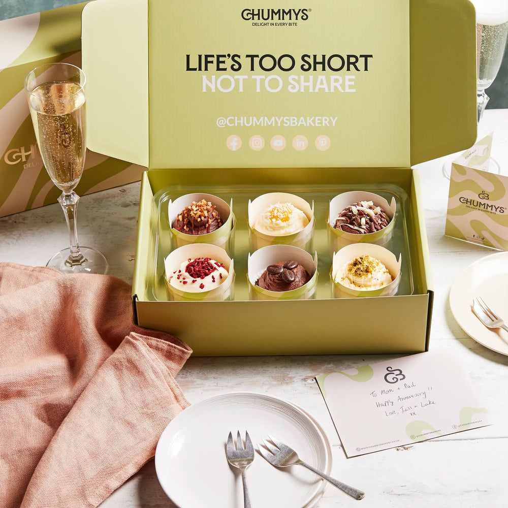 What's In The Box: All of our branded cupcake boxes are eco-friendly. Inside, you'll find your goodies securely wrapped in a biodegradable cupcake sleeve and in a compostable tray that keep them fresh and safe during delivery. These are then placed in our luxurious sleeves, adding another touch of elegance to your gifting experience.